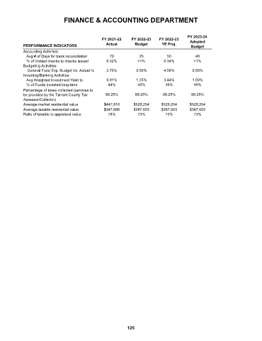 PERFORMANCE INDICATORS Actual Budget YE Proj. Budget