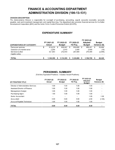 payable, cash and investment management, and capital financing. The department also provides financial services for the Keller