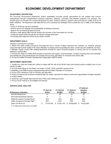 Keller residents. The Department will utilize the Economic Development Strategic Plan to assist the City of Keller in the following