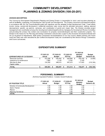 The Community Development Department's Planning and Zoning Division is responsible for short- and long-term planning as