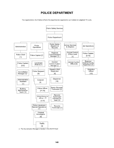 The organizational chart below reflects the departmental organization as it relates to budgeted FTE costs.