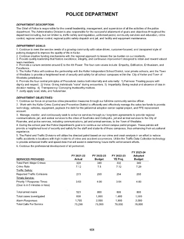 department including, but not limited to, traffic safety and regulation, uniformed patrol, community services and education, crime