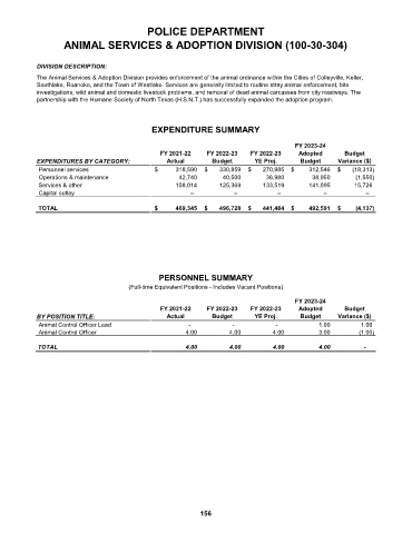 ANIMAL SERVICES & ADOPTION DIVISION (100-30-304)