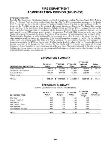The Keller Fire Department’s Administration Division consists of six employees including: Fire Chief, Deputy Chief, Training