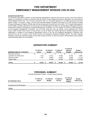 addition to coordination of Keller’s involvement with the Tarrant County Regional Emergency Operations Plan and Regional