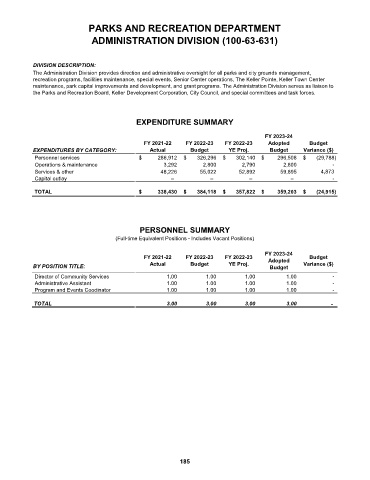 maintenance, park capital improvements and development, and grant programs. The Administration Division serves as liaison to