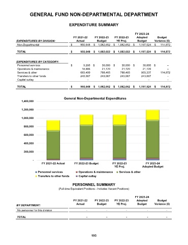 GENERAL FUND NON-DEPARTMENTAL DEPARTMENT