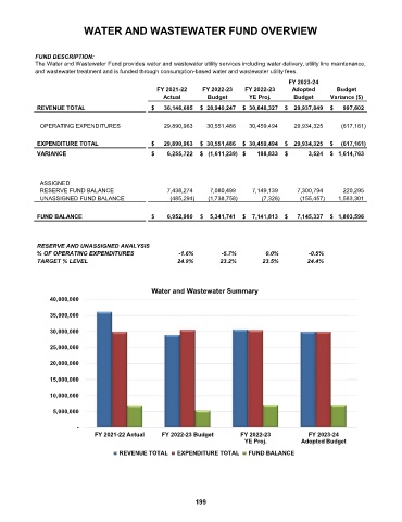 The Water and Wastewater Fund provides water and wastewater utility services including water delivery, utility line maintenance,