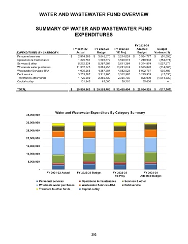 SUMMARY OF WATER AND WASTEWATER FUND
