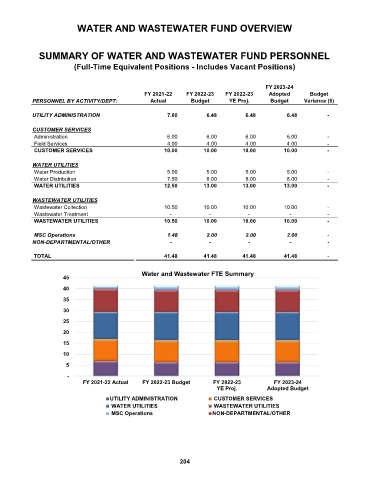 SUMMARY OF WATER AND WASTEWATER FUND PERSONNEL