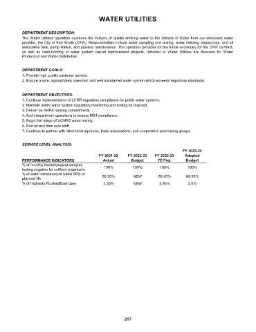 The Water Utilities operation oversees the delivery of quality drinking water to the citizens of Keller from our wholesale water