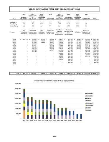 UTILITY TOTAL DEBT OBLIGATIONS BY YEAR AND ISSUANCE