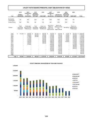 UTILITY OUTSTANDING PRINCIPAL DEBT OBLIGATIONS BY ISSUE