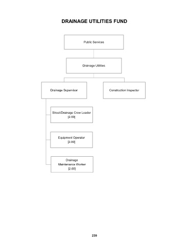 DRAINAGE UTILITIES FUND Public Services Drainage Utilities Drainage Supervisor Construction Inspector Street/Drainage Crew Leader [2.00] Equipment Operator [2.00] Drainage Maintenance Worker [2.00] 239