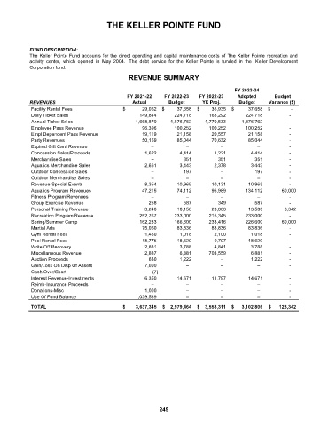 activity center, which opened in May 2004. The debt service for the Keller Pointe is funded in the Keller Development