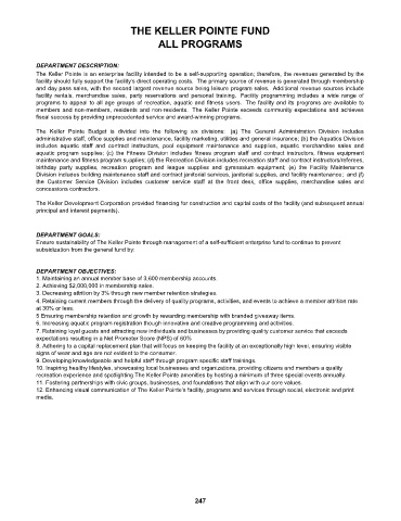The Keller Pointe Budget is divided into the following six divisions: (a) The General Administration Division includes