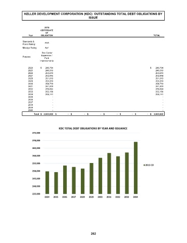 KELLER DEVELOPMENT CORPORATION (KDC) OUTSTANDING TOTAL DEBT OBLIGATIONS BY