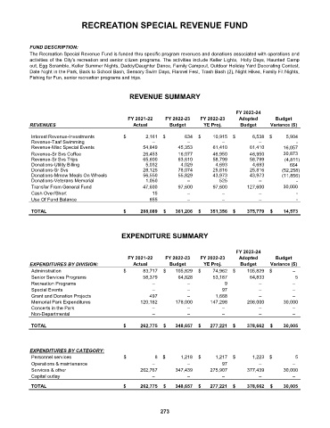 activities of the City’s recreation and senior citizen programs. The activities include Keller Lights, Holly Days, Haunted Camp