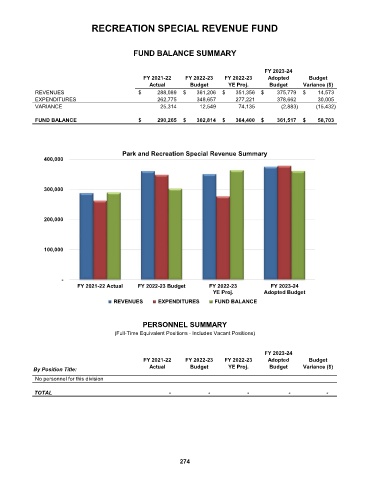 Park and Recreation Special Revenue Summary