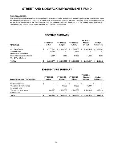 Expenditures are designated for street, sidewalk, and drainage improvements.