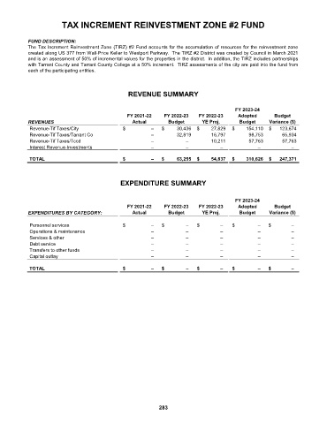 TAX INCREMENT REINVESTMENT ZONE #2 FUND
