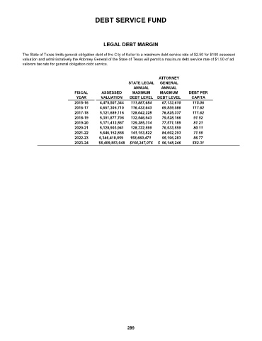 The State of Texas limits general obligation debt of the City of Keller to a maximum debt service rate of $2.50 for $100 assessed