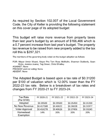 The members of the governing body voted on the budget adoption as follows: