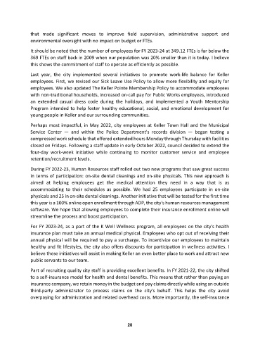 Last year, the city implemented several initiatives to promote work‐life balance for Keller