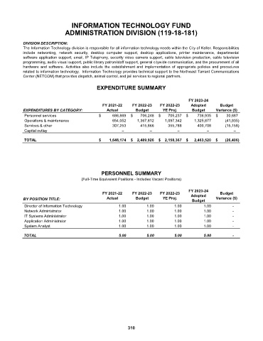 The Information Technology division is responsible for all information technology needs within the City of Keller. Responsibilities