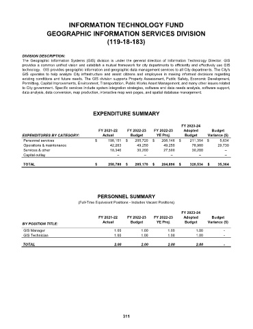 technology. GIS provides geographic information and geographic data management services to all City departments. The City's