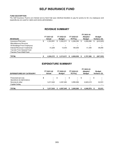 The Self Insurance Fund is an internal service fund that uses interfund transfers to pay for premiums for city employees and