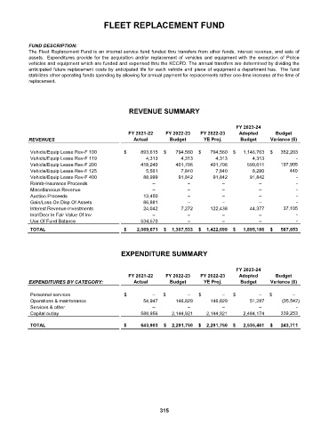 The Fleet Replacement Fund is an internal service fund funded thru transfers from other funds, interest revenue, and sale of