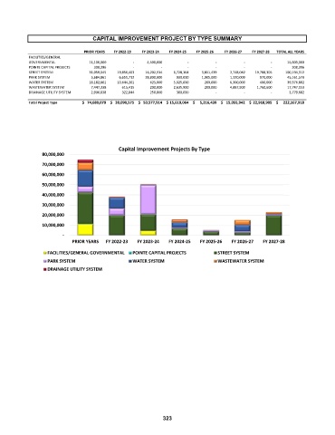 CAPITAL IMPROVEMENT PROJECT BY TYPE SUMMARY