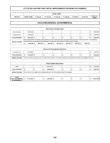 CITY OF KELLER FIVE-YEAR CAPITAL IMPROVEMENTS PROGRAM (CIP) SUMMARY