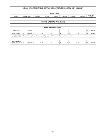 CITY OF KELLER FIVE-YEAR CAPITAL IMPROVEMENTS PROGRAM (CIP) SUMMARY