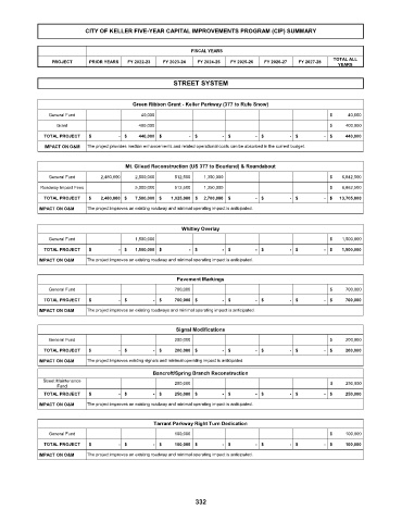 CITY OF KELLER FIVE-YEAR CAPITAL IMPROVEMENTS PROGRAM (CIP) SUMMARY