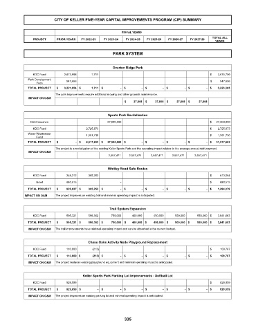 The project is a revitalization of the existing Keller Sports Park and the operating impact relates to the average annual debt payment.