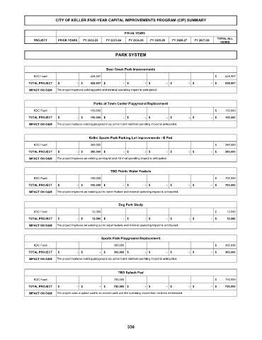 CITY OF KELLER FIVE-YEAR CAPITAL IMPROVEMENTS PROGRAM (CIP) SUMMARY