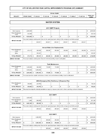 CITY OF KELLER FIVE-YEAR CAPITAL IMPROVEMENTS PROGRAM (CIP) SUMMARY