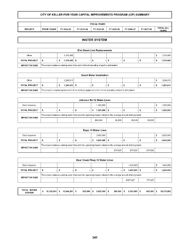 CITY OF KELLER FIVE-YEAR CAPITAL IMPROVEMENTS PROGRAM (CIP) SUMMARY