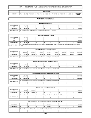 The project improves existing wastewater lines and the operating impact relates to the average annual debt payment.