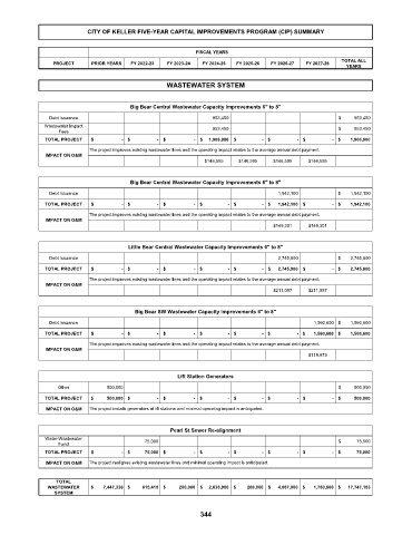 The project improves existing wastewater lines and the operating impact relates to the average annual debt payment.