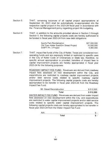 Section 7: THAT, impact fee funds of the City of Keller, Texas are considered non-