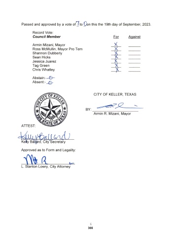 Passed and approved by a vote onto Con this the 19th day of September, 2023.