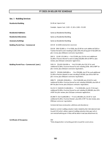 Building Permit Fees – Commercial (cont.) $391.25 $25,001-$50,000 cv − First $25,000, plus $10.10 for each