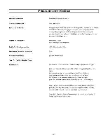Park Land Dedication One (1) acre per thirty (30) residential dwelling units. Payment in lieu of land