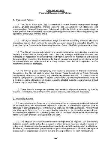 1.1 The City of Keller (the City) is committed to sound financial management through