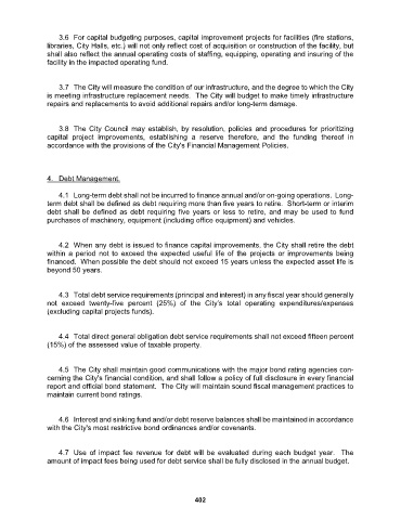 4.7 Use of impact fee revenue for debt will be evaluated during each budget year. The