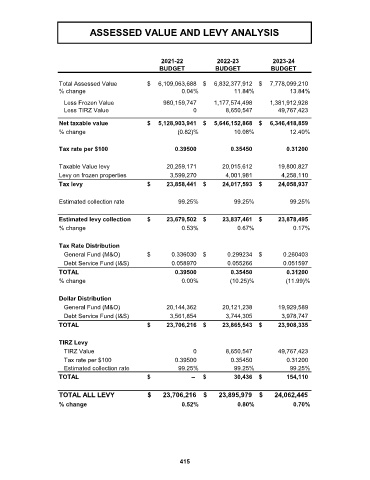 ASSESSED VALUE AND LEVY ANALYSIS