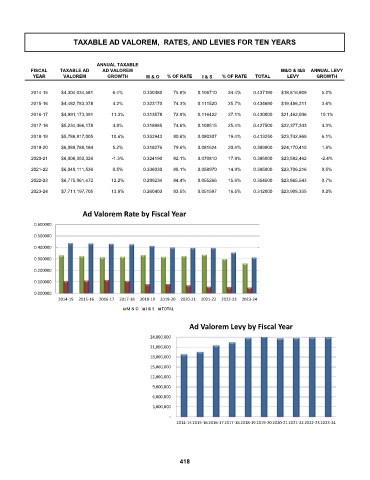 TAXABLE AD VALOREM, RATES, AND LEVIES FOR TEN YEARS